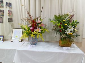 展示では、月曜日午後のお花くらぶからは2つのお花の展示を行いました。